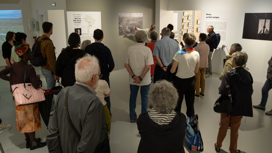 Tout au long du mois, des visites guidées étaient organisées chaque soir avant les conférences, animées par une équipe de bénévoles, de stagiaire et Volontaire mobilisés pour accueillir le public. Ces visites permettaient un accompagnement personnalisé et des explications détaillées sur les réalités de l’extractivisme et les histoires portées par chaque photo.