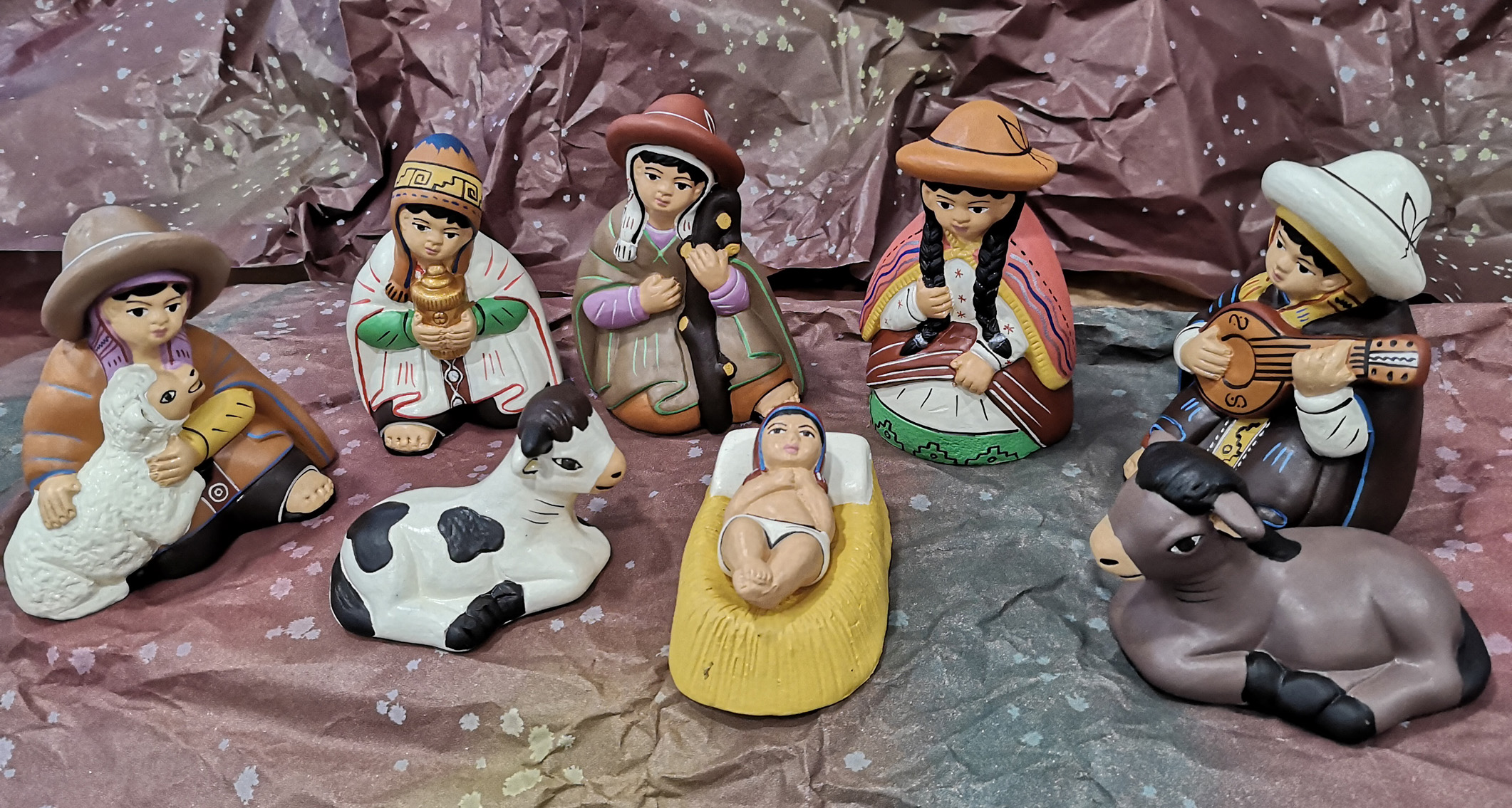 Réalisées par des artisans qui font appel à leur savoir-faire traditionnel, ces crèches permettent de rémunérer au juste prix le travail de ces artisans, au Pérou, au Bangladesh, au Kénia etc… . Elles sont peintes et décorées à la main.
